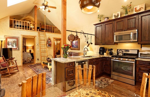 The cabin interior was recently with a gorgeous custom staircase to the loft. Additionally, the kitchen has been remodeled with granite counter tops, stainless appliances, and wood flooring throughout. Other additions include A/C, washer/dryer, dishwasher and an upgraded bathroom with walk in shower and double vanities. No details has been overlooked.