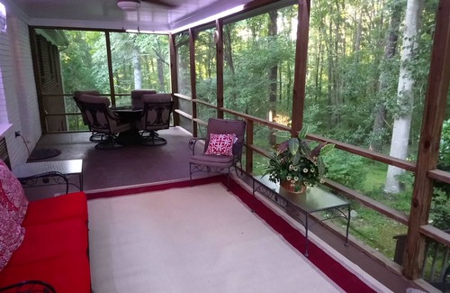 We also occupy the lower/terrace level and offer excellent customer service as a result of our close proximity. For our privacy, we ask that our guests not use the back yard (unless arranged in advance), but the front yard is all yours:-). While the screened porch is for your private use, we share the back deck and propane grill with you, but we try to give our guests as much privacy as possible. Our goal is to give our guests a beautiful, peaceful, private home-away-from-home experience.