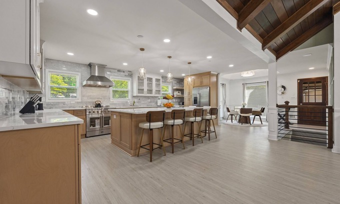 ✔ Full gourmet kitchen with oven, microwave, coffee maker, dishwasher, and more