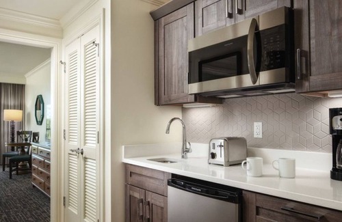 Classic Florida plantation-style decor welcomes you to a spacious studio suite offering a plush king-size bed, sleeper sofa, full bath with upscale bath amenities, and kitchenette with refrigerator, microwave and coffee maker. Each residence includes luxurious amenities like furnished screened-in lanai, TV, stereo, DVD player, I-Home Docking Station and wireless internet access.