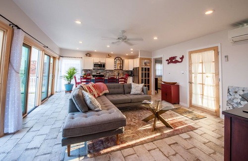 The open layout of the living area and kitchen provides plenty of room for entertainment. It has three bedrooms (two queen sized beds and one trundle bed that can be used as two singles or joined together as a king - It has two fully renovated bathrooms. Laundry room with new Bosch washer and dryer.