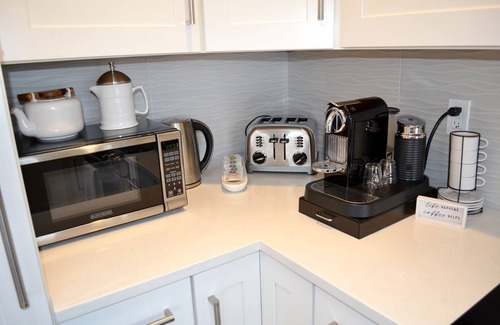 Outdoor amenities include a large 8-person table for al fresco dining, a gas grill, ample outdoor seating, a fire pit, and a spacious lawn (with access to many lawn games)- all set amidst the professionally landscaped grounds. The sweet scents from over a dozen mature lavender plants mixed with the salty sea breeze will stick with you long after you leave.