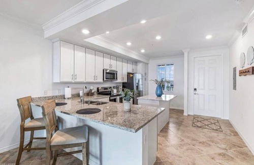 Welcome to your luxury 2BR/2BA condo in Babcock Ranch! Enjoy lake & golf course views, stunning sunsets, and two golf memberships to the 18-hole Babcock National course. The cozy space features 2 queen beds, perfect for a small group of guests. With amenities like AC, WiFi, and a fitness room, you'll feel right at home. Access resort-style amenities: pools, clubhouse, fitness center, spa, tiki bar, and walking/hiking trails. Features include a full kitchen, free covered parking, Wi-Fi, in-unit laundry, and private balcony. Near Founders Square & 40 min from Fort Myers Airport. Rental agreement & golf transfer fee required.