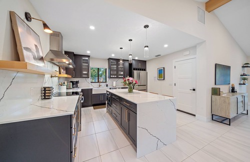 Experience luxury at this newly remodeled home with a brand-new pool, spa, and putting green. Centrally-located near downtown Sarasota, Siesta Key, Lido Key beaches, and St. Armand’s Circle, it features a full kitchen, 3 king bedrooms, 3 full bathrooms, outdoor dining, high speed internet, a 75” outdoor TV, fire pit, and EV charger. Pet-friendly with a fenced yard, pet crate, bowls & treats.