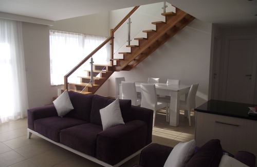 This luxury 3 bed apartment is fully air conditioned and comprises 1 kingsize bedroom and 2 twin bedrooms, with 1 bathroom and 2 ensuites, comfortably sleeping 7 people. It has a large balcony with a jacuzzi bath on the lower floor, with open plan kitchen lounge area, one twin bedroom and a bathroom. The first floor has two bedrooms with ensuites and a balcony adjoining the two. The apartment also has its own personal wifi.