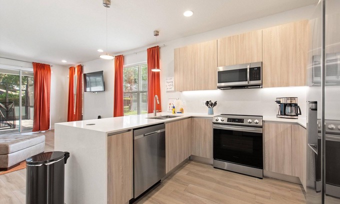 New and very modern four bedroom town home with pool.Just fifteen minutes to Disney parks makes this home an ideal location for your vacation or for a short relaxing get away in the comfort of this very well appointed home.The splash pool is great for refreshing yourself after a long day at the parks.Within minutes of the home you have a Walmart super centre, banks pharmacies and plenty of restaurants which add to the convenience of this home