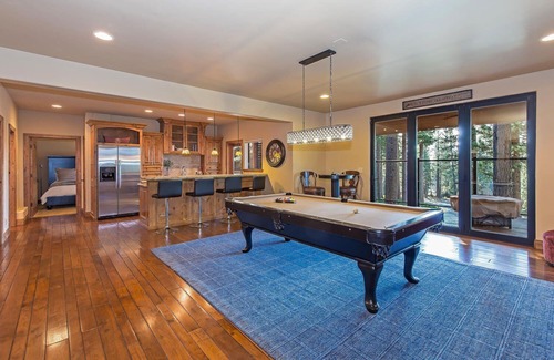 From snowy slopes to sandy beaches, this luxurious 4BR/4.5BA home offers access to exciting alpine adventures. Admire beautiful views of Lake Tahoe shimmering through Sierra pines from the spacious balconies. Unwind in the private hot tub, snuggle up by the fire-pits, or play pool in the game room. LIVING AREA The main living area is furnished with a huge sectional. Curl up by the gas fireplace or screen a movie on the 65” TV. Play billiards in the game room, outfitted with a 42” TV and a gas fireplace. A kitchenette includes a wine fridge, bar seating for four, and helpful gadgets for preparing game-time snacks. KITCHEN & DINING Indulge your inner chef in the modern gourmet kitchen. A full suite of appliances includes a Viking six-burner gas range with double ovens. The sprawling granite island offers ample preparation space and seating for five. Share elegant meals at the table for 10. Bedrooms & Bathrooms: The primary suite has a California king bed and a TV. Sip morning coffee on the private balcony. The en-suite bathroom features a double vanity, a deep bathtub, and a walk-in shower. The spacious second suite has a king bed, a TV, and a private balcony. The en-suite bathroom is configured with a soaking tub and walk-in shower. The third bedroom holds a queen bed, a twin-size bed, and a TV. The fourth bedroom has a twin-XL-over-queen bunk bed, Queen bed and full bathroom . The guest bathroom includes a walk-in shower. OUTDOOR AREA & AMENITIES Sip drinks and take in lovely views of Lake Tahoe on the sprawling balcony, equipped with a gas fire-pit. Head to the deck and soak in the private hot tub or gather around the gas fire-pit. Fire up the gas grill to enjoy a home-style cookout. EXTRA PERKS & MORE DETAILS Complimentary Wi-Fi, a washer/dryer, and parking for two cars in the garage and two in the driveway are provided. This home has central air-conditioning on the entry-level floor only. Another added bonus is the home is equipped with a Recirculating hot water system! Outdoor wood-burning fires and charcoal grills are prohibited per local ordinances (gas grills are ok). Pets are strictly prohibited due to the homeowner's health issues. This home is located in a quiet neighborhood and is not well-suited for loud celebrations. Please observe the mandatory, county-wide noise ordinance from 10pm - 8am. Violations may result in a daily fine of $250 and possible eviction without refund. LOCATION Head to the Incline Village golf courses (2 miles) or travel 4 miles to Diamond Peak Ski Resort. Nearby public beaches, golf courses, and scenic hiking trails await! No Barbecue during the winter months.