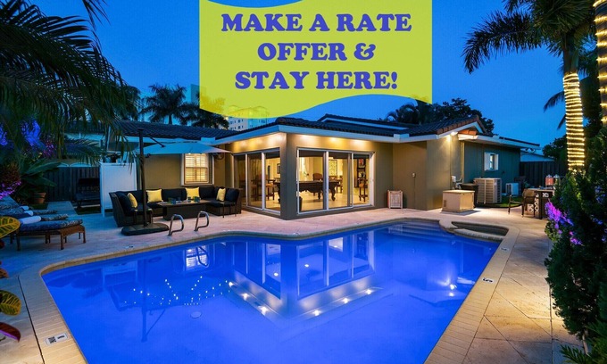 Luxury 4 Bedroom Pool Home Just Steps Away from Private Beach! Billiards~Ping Pong~Near The Action! | House in Pompano Beach