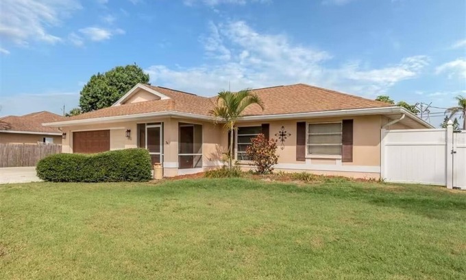 Enjoy your relaxing and peaceful fully heated pool home located in a very quiet neighborhood of Venice, one of the great undiscovered gems of southwest Florida. With three bedrooms and four beds this house is perfect for your family vacation getaway. The master bedroom features a king sized bed, fully updated bathroom with huge walk in shower, and doors that give you your own private access to the pool. The cozy second bedroom features a queen bed, and shared full bathroom with a third bedroom that features two single beds.