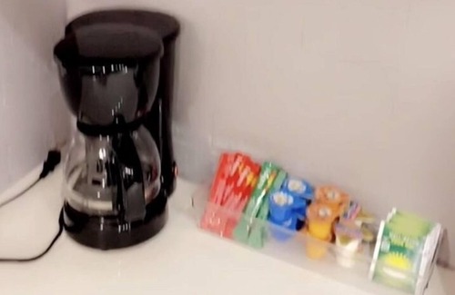 pull out bed sofa couch, kitchen is equipped with your essentials, and it’s very spacious!