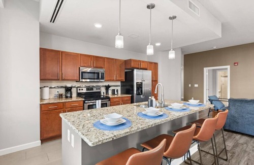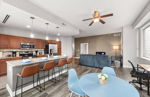 Best-rates for the Gateway District apartment starts from $302 per night with includes Pet Friendly, Accessibility, Wellness Facilities, Fireplace/Heating, Guest Services, Child Friendly, Internet, Parking, TV, Wheelchair Accessible, Security/Safety, Kitchen, Laundry, Air Conditioner StayAndPlay offers fully equipped golf villas, golf hotels, golf resorts, luxury golf cabins, and exclusive golf retreats, making it easier than ever to find your perfect golf escape — ideal for families, peaceful getaways, or pet-friendly retreats with the whole crew.