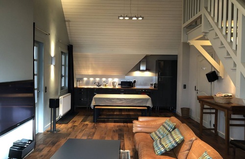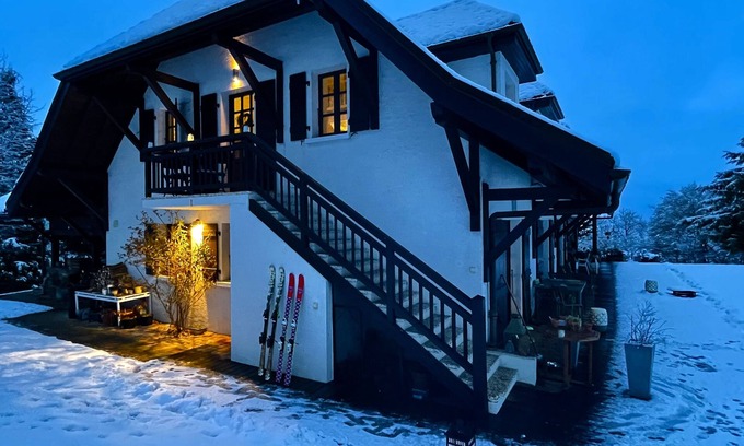 Becuet Apartment is the perfect place for mountain lovers whatever the season. Very peaceful, set in it's own grounds with open views to Mont Blanc and the Chamonix Valley. Just a short drive from several great ski resorts such as Megeve, Combloux, Les Contamines and Chamonix. Becuet Apartment offers the perfect combination of Alpine peace, tranquility and beauty with easy access to shops, restaurants and an array of activities. The apartment itself is extremely spacious with a huge double height ( 7 m ) living area and two generous bedrooms and a bathroom with wetroom shower upstairs. Perfect for a small family or group of friends.