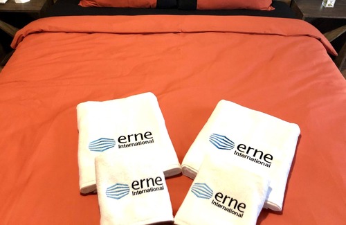 You step into the elegantly designed bedroom , designed to make you feel relaxed and get some good rest. King-sized bed, adorned with orange and black bed sheets , covers and pillow cases which can be changed to white if preferred. 2 bed-side tables and 1 bed side standing lamp, some art decor to match. Wardrobe and hangers enclosed in the wardrobe on the side to put your wares and a standing mirror. This room is well scented with nature diffusers to keep that natural smell.