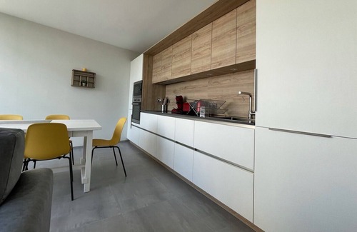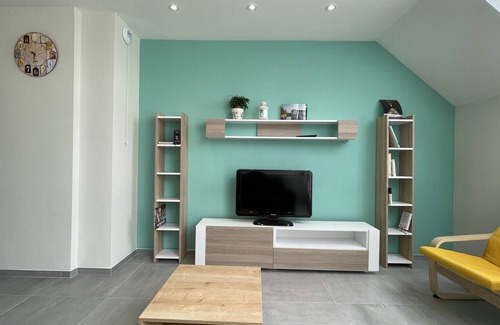 You will enter a large living room composed of the fully equipped kitchen (oven, fridge, hotplates, microwave, Senséo coffee maker etc.) and a kitchen kit for the 1st night only (1 garbage bag, 1 sponge, 1 small bottle of dishwashing liquid, 1 dishwashing tablet and a kitchen towel) will be at your disposal, except for kitchen groceries (salt, pepper, oil, etc.) which will not be provided. You will also have a dining table and a lounge area where you will find a sofa, armchair and flat screen television. All in a very bright modern decor. You will have access to a free and unlimited WiFi connection.