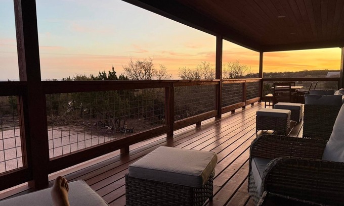Come enjoy our Barndominium,where the charm of the Hill Country meets luxurious comfort.This Beautiful ,new 1,600 sq.ft. space has 2 bedrooms,2 bathrooms and a loft.Sityated on the top floor of a Barndominium with an extended deck for sunrise or sunset viewing in the oversized patio furniture.