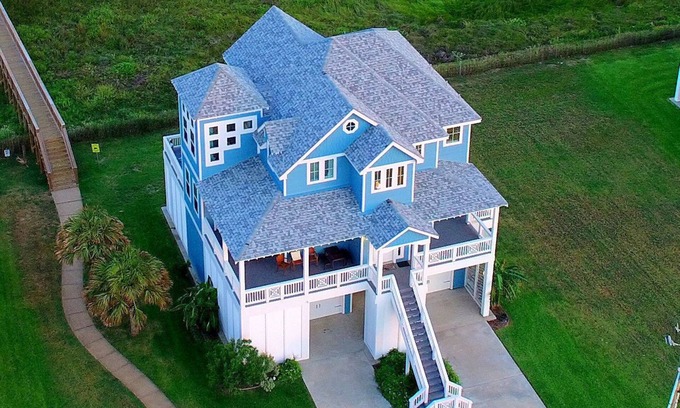 Welcome to the Sea Sage in Galveston, Texas. This beautiful, beachfront home is located in the prestigious beach club community of Pointe West. The Sea Sage offers easy beach access with a boardwalk across the dunes steps from your porch. Enjoy the stunning views of the Gulf of Mexico from multiple porches and two master suites. This 5 bedroom 5 bath, immaculately decorated home is sure to satisfy the needs of the entire family or group. Enjoy a fully equipped gourmet kitchen. The Sea Sage sleeps up to 12 people comfortably with a bunk room under the stars for the kids. Come and experience the salt air either on the beach or at the wonderful Pointe West Beach Club just a stroll or golf cart ride away. Take a swim in the large Beach Club pool, bayside lazy river (***Must purchase wristbands from Pointe West- Additional fee***) or have a sea side meal at the Pointe Restaurant. Vacation in comfort and style at the Sea Sage! Looking for a slightly smaller beachfront home? Please consider our other listing, the Sea Brooke. Home Away Listing number: 7890985