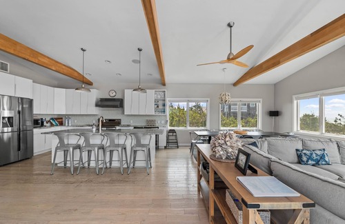 Crème de la crème, Luxury 5 bedroom 4 bath living situated just off the dunes with incredible ocean views. This 2 story home is one of a kind in Ocean Bay Park. Offering upper and lower decks along with a roof deck with a 350 degree view of the island, ocean and bay. A private outdoor shower is located on the main level deck. Vacation in this state of the art home with family and friends.