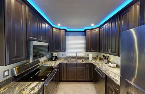 Blackout blinds help with sleeping in, fans in all bedrooms and family room, three blow dryers, iron, ironing board, safe and cushioned patio furniture. A dock box located near the common area is stocked with beach chairs, mats, toys and a beach umbrella. The common area has a charcoal grill and picnic table for your use. If you decide to leave your fabulous vacation home, take the elevator or steps, go out the private gate and you are on the beautiful powdery sands of Clearwater Beach. The north end location of Clearwater Beach is less busy than the center of town, yet you are walking distance to most everything. Restaurants, shops and bars are a 10 minute walk or less and Pier 60 is a just 20 minute walk . Trolleys and free shuttles are available on the main street. Or just sit back and watch the beautiful sunset in the relaxing environment of your vacation home.