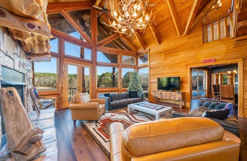 You have found paradise! This 30-acre secluded property has plenty of space for 28 guests total. Tucked away in the woods, you'll have plenty of privacy while only being minutes away from town, marinas and local restaurants. Whether you want to be by the pool, hot tub, or watch the kids play in the fields-your will discover endless fun at our 6,800sq ft luxury lodge retreat. Relax with the whole family at this peaceful place to stay, stargaze at night or relax by the fire. Nestled against the Ouachita National Forest, the woods and wildlife will entertain you. Deer, wild turkeys, and Bald Eagles are frequent visitors to our pond.