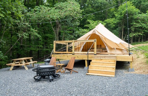 Luxury Camping with King Bed - Cacapon Tent is located in Great Cacapon. Luxury Camping with King Bed - Cacapon Tent provides accommodation, featuring Parking, Balcony/Terrace, Security/Safety, among other amenities. This RV Rental features Parking, Balcony/Terrace, Security/Safety, to make your stay a comfortable one.