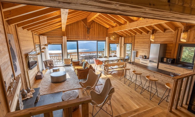 Superb new chalet, ideally located, close to the ski slopes, majestic unobstructed view of Lake Matemale and the Mountains.