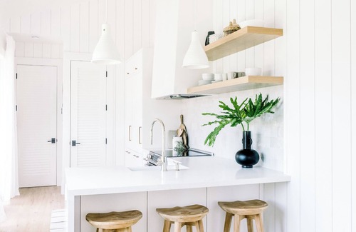 Pool with integrated heated spa, complimentary WiFi, luxury bamboo and linen bedding, beach chairs, beach umbrellas, beach towels, cooler box, central air-conditioning, cable TV, organic skincare products, free dedicated onsite car parking, mid-stay housekeeping, full kitchen and laundry amenities, queen sleeper sofa, passcode protected safe, tea and coffee, laundry detergent and supplies.