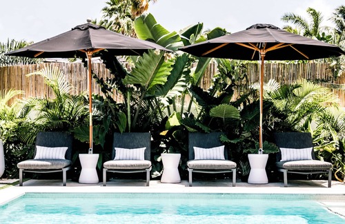 Pool with integrated heated spa, complimentary WiFi, luxury bamboo and linen bedding, beach chairs, beach umbrellas, beach towels, cooler box, central air-conditioning, cable TV, organic skincare products, free dedicated onsite car parking, mid-stay housekeeping, full kitchen and laundry amenities, queen sleeper sofa, passcode protected safe, tea and coffee, laundry detergent and supplies