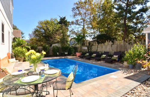 Luxury cottage, beach blk, 7BR, heated in-ground pool, firepit, linens included! | House in Dewey Beach