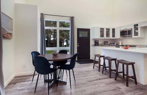 Modern, new home in the woods across the street from Duck Lake! Many families of Interlochen Academy students stay here bc it’s less than a 5 minute drive to the Interlochen Center for the Arts. It’s a 5 minute walk into Interlochen State Park or stroll through acres of private woods right behind the home. For skiing and other winter activities, Crystal Mountain is less than 30 minutes away. The home is ideal for two guests, but can accomodate two others on a sofa bed in the living room.