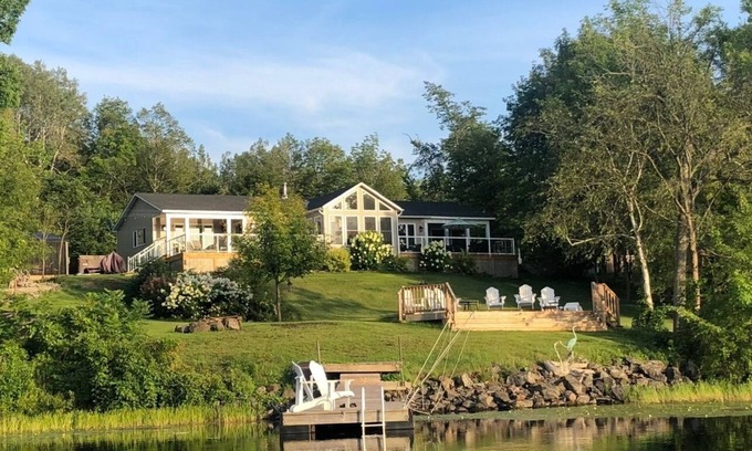 Luxury cottage on beautiful lakefront with hot-tub & private bunkie New to VRBO is located in Frontenac. Luxury cottage on beautiful lakefront with hot-tub & private bunkie New to VRBO provides accommodation, featuring Guest Services, Barbecue/Outdoor Cooking, Laundry, among other amenities. This Cottage features Guest Services, Barbecue/Outdoor Cooking, Laundry, to make your stay a comfortable one.