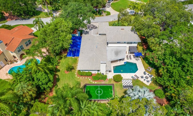 This beautiful Newly renovated villa is near the lake. Located less than 10 min from the beach and boasts 8 bedrooms and 5 baths. Enjoy the outdoors with the private heated pool and lots of amenities, including a basketball court, a playground, a mini soccer field for kids, and more. A BBQ grill with an outdoor dining table is available. The perfect getaway for your next family vacation!