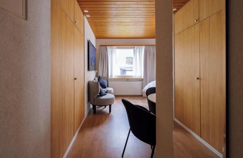 Enjoy a thoughtfully designed studio in the heart of Davos, blending comfort and style. The apartment includes a versatile king-size bed that can also be arranged as two separate single beds, along with elegant furnishings and a fully equipped kitchen featuring stovetop, oven, fridge, and Nespresso machine.