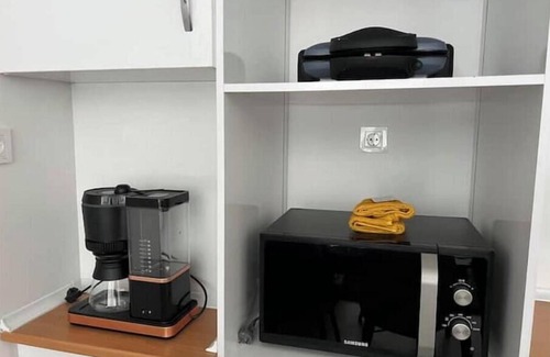 Kitchen Equipment is fully equipped. Refrigerator, Stove-Easpirator, Microwave, Kettle, Coffee maker-cups,Citrus juicer, Blender,Pot pan set,Cutlery set, and all your remaining needs are available.