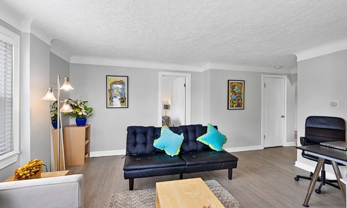Stay in our trendy two-bedroom upstairs apartment, just a 3-minute walk from Hyatt Place Hotel and downtown Royal Oak, where you'll find a variety of restaurants, bars, entertainment, and coffee shops. Perfect for short or long stays, this peaceful, walkable neighborhood is close to Rochester, Birmingham, Ferndale, Royal Oak Beaumont, The Detroit Zoo, Downtown Detroit, Woodward and the Dream Cruise, freeways, etc. Book now and enjoy comfort and convenience!