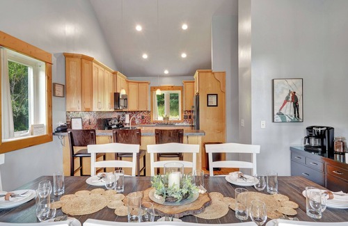 2 KITCHENS: Each is fully equipped, Keurig pod and percolator coffee pot, tea kettle, spices, dishware/flatware, breakfast bar w/seating. Free coffee pods and ground coffee.
