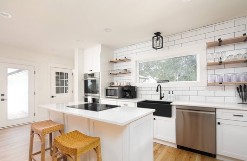 Upstairs you will find three additional bedrooms. One ensuite queen bedroom with sitting area, another queen bed with twin daybed and twin trundle, and the third has a queen bed with twin over twin bunks. Enjoy a restful night's sleep on the memory foam mattresses and Slumber Cloud comforters.
