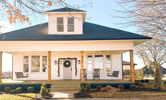 In the heart of Kentucky's Bourbon Trail, our 4-bed, 3.5-bath updated craftsman home offers luxury while enjoying nature's beauty. Enjoy stunning sunrises from the front porch. Luxurious furnishings adorn the spacious interior, with a bourbon bar. Unwind in the hot tub under the stars. Kids can explore tree swings, while 2 acres provide ample outdoor space to enjoy.