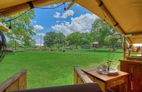 The luxury camping tents are nestled in the heart of a working commercial apiary and farm just one hour from Houston, TX. For more than a century, honey has been running through 5 generations of the hosts' family veins.