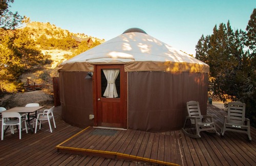 Luxury Glamping Yurt Resort Between National Parks with desert mountain views, close to hiking trails, slot canyons, off-roading and more! | Resort in Escalante