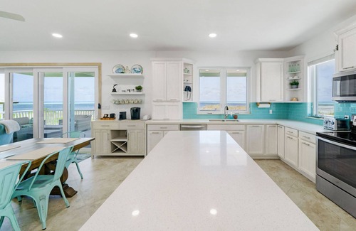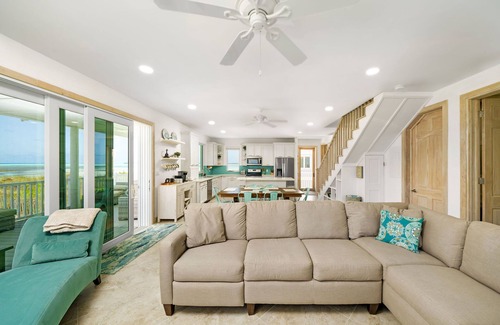 On-site amenities include kayaks, snorkeling gear, lounge chairs, beach umbrellas, a hammock, and beach toys. A full laundry, bathroom, an indoor shower, two outdoor showers, and large 18’ x 24’ covered patio on the ground floor for added convenience.