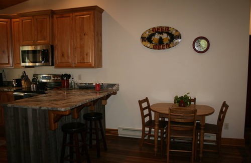Our guest house offers all the comforts of home in a picturesque wooded setting. Located on 2 acres, this guest quarters away from the main house was designed for relaxation and escape. Approximately 200 feet from the river, open the windows and hear the sounds of the rapids. While the guest house, doesn't have a river view, you can still enjoy sitting by the water watching osprey, eagles and geese soar overhead. Our property has 185 feet of private river frontage to enjoy. Wildlife is abundant. You can fish from the bank for rainbow or cut throat trout or jump into a kayak, raft or tube and float down the river. The guest house is well-appointed with granite countertops, wood accents and homey decor. The kitchen is fully stocked with all utensils, pots, pans, bakeware and dishes necessary to make cooking and dining easy. You will sleep soundly listening to the river in the cozy bedroom on a pillow top queen-sized mattress. In the living room a comfortable queen-sized sofa bed is ready for enjoyment. The guest house has a small desk and chair ideal for use as a work station.