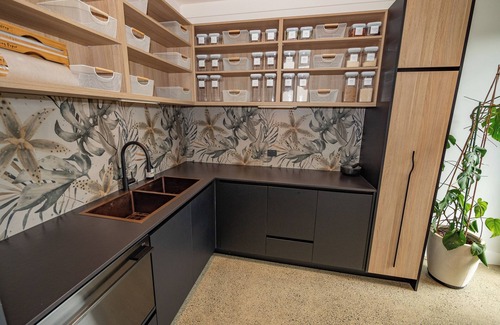Four bedrooms and two bathrooms are spread over two wings of the single level, architecturally designed home. The large open plan living area also provides a generous kitchen with butler's pantry, with the alfresco dining or lounging options also protected by shade sails to extend your hospitality into the evening, rain or shine.