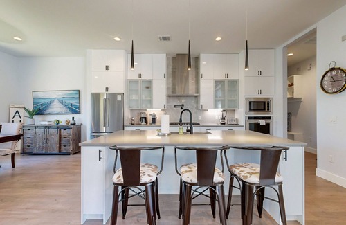 Kick back with a good book or gather together by the gas fireplace in the open living room. A dedicated laundry room adds convenience to longer stays.