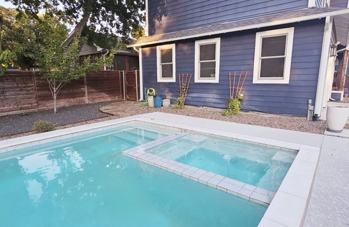 Mckinney Downtown Bungalow is a beautiful home with a pool, hot tub, fire pit, outdoor pizza oven all within the historic district of downtown Mckinney! We are a 7 minute walk from all the shops, restaurants, and festivities downtown Mckinney has to offer! Whether cozying by the fireplace before heading to a festival, or enjoying family time in the resort backyard before walking downtown for dinner, you have the best of all worlds in our home!