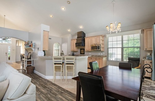 Our spacious, 3200 square foot home is in a private residential community. This professionally decorated home provides excellent accommodations with only the top-of-the-line furnishings and bedding. The kitchen has been remodeled as well as the bathrooms. The carpet and all flooring are new and give guests the feeling of luxury and comfort.