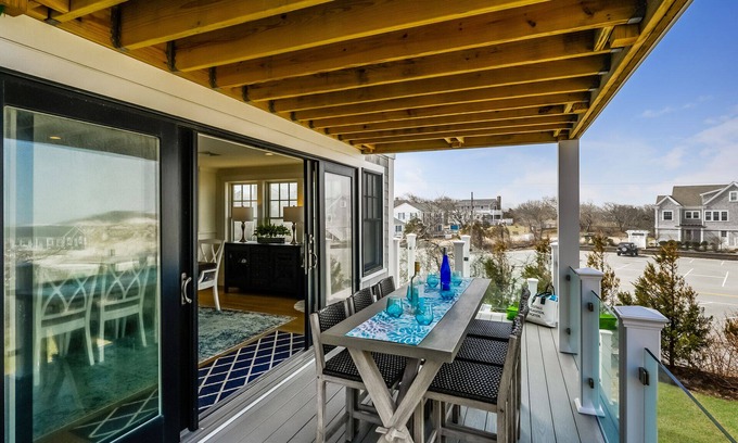 Welcome to Oscar by the Sea! Enjoy incredible ocean views of Cape Cod Bay from the decks of this sophisticated and elegant yet remarkably casual and comfortable luxury home. This ultimate beach home offers three levels of living with a fabulous floor plan - sleeping up to 16! This home is a true delight for those seeking to revel in the 'Cape light' as the sun rises, or drink in the fiery sunset over the Bay as the day winds down. Central A/C, WIFI and Linens Included, just steps from Bayview Beach and a few minutes drive to the sought after bay side beaches in Dennis - Corporation and Mayflower Beaches.