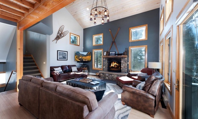 The luxurious home is furnished with rustic, high quality furnishings, historic mining and western photos and features TVs in the Main Living space (60') and the 2nd living space (42') and three of the bedrooms (42').
