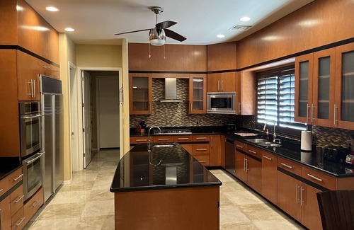 Exciting news! Brand new pool and water feature are now complete! The new pickleball court opens July 2023! This high end, centrally located, 5400 square foot luxury home with lots of amenities has something for everyone! Outdoor fun begins with pickleball, volleyball, basketball, cornhole, ping pong, horseshoes, and bocce ball. Take a break for some outdoor dining cooked on the gas barbecue grill. Then relax by the fire pit, or maybe take a dip in the 6 person hot tub. The fun continues indoors with billiards, foosball, and poker. Then sit back in front one of the flat screens for the big game or movie night. The foodies in the group won’t be disappointed with the enormous, well appointed kitchen. Do it yourselves or invite one of the talented local chefs in to do it for you. Feel like venturing out? Scottsdale, golf courses, hiking trails, unique dining experiences, and shopping can be found within minutes. Welcome to your home away from home!