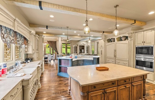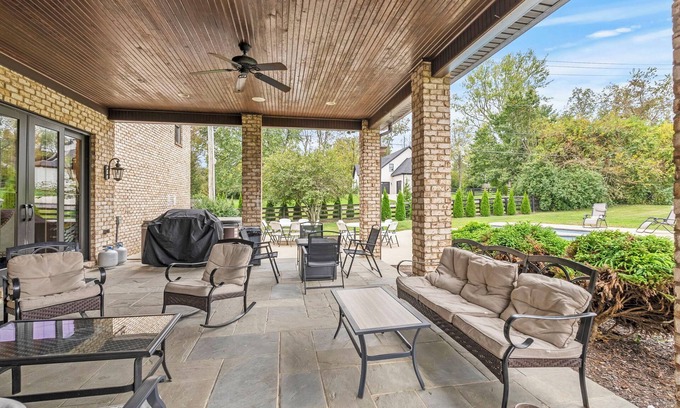 Welcome to an unparalleled stay experience in the heart of Lexington, Kentucky on 5 private acres. This estate is not just a home but a statement of grandeur and glee. With 9 sumptuous bedrooms and 9 full bathrooms, elevator, gaming room, and year round heated pool and spa, this 12,750 square foot masterpiece offers an opulent retreat full of fun for guests of all ages.