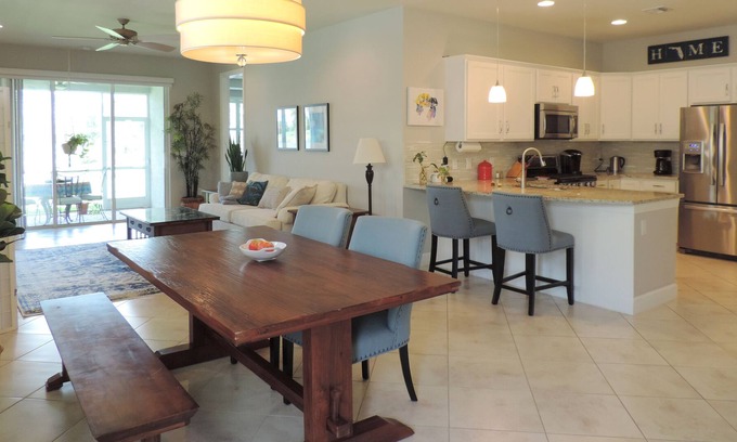 Play pickleball, bocce, and tennis. Enjoy the resort-style pool (with 25-yard swim lanes) and the gym. Golfing is close by. Shop and eat at nearby Miromar Outlet mall and Coconut Point. You are minutes from Southwest Florida International Airport, and close to Naples, Bonita Springs / Bonita Beach, Sanibel and Fort Myers / Fort Myers Beach.